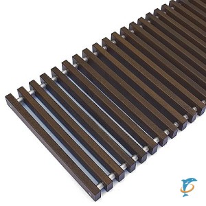 Внутрипольные конвекторы монтируются в подготовленные ниши, куда подводятся трубы с теплоносителем или провода, если предусмотрена работа от электросети. itermic Решетка деревянная поперечная SGW-25-3700 венге — декоративный элемент, который позволит замаскировать отопительную технику и гармонично дополнит интерьер. Модель размером 370 x 25 x 2.4 см обладает достаточным запасом прочности, поэтому выполняет еще и защитную функцию, препятствуя попаданию крупного мусора в систему и исключая ее повреждение вследствие неаккуратных действий людей. Купив изделие, вы сможете сделать обстановку завершенной. И для этого даже не потребуется много времени, ведь монтаж выполняется очень просто.