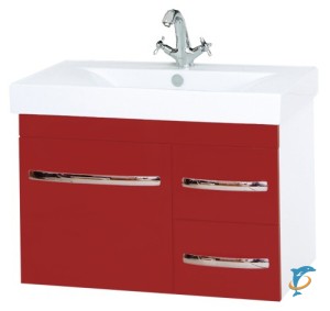 Тумба с раковиной Misty Эмилия -75 подвесная красная