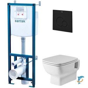 ПЭК унитаз с инсталляцией Santek Нео Rimless с сиденьем "Микролифт" и черной матовой клавишей смыва (1WH501777)